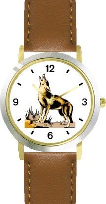 Coyote Dog - WATCHBUDDY® DELUXE TWO-TONE THEME WATCH - Arabic Numbers - Brown Leather Strap-Children's Size-Small ( Boy's Size & Girl's Size ) Review