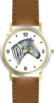 Zebra - JP - African Animal - WATCHBUDDY® DELUXE TWO-TONE THEME WATCH - Arabic Numbers - Brown Leather Strap-Children's Size-Small ( Boy's Size & Girl's Size ) Review